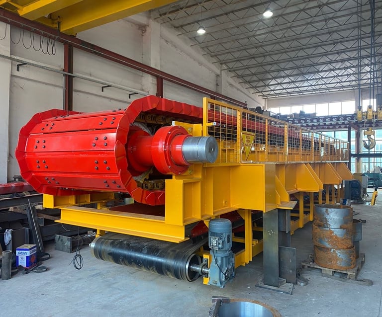 Paletli götürücü, büyük boyutlu ağır madenlerin taşınmasında önemli bir rol oynamaktadır. Bu sistem, madenlerin istenilen boyut ve kapasitelerde özel bunkerlerle beslenmesini sağlayarak, kırıcıların etkin bir şekilde çalışmasına yardımcı olur. Geniş kapasiteleri sayesinde ağır malzemeleri güvenli bir şekilde taşırken, paletli yapısı ile zorlu arazilerde de yüksek performans sergiler. Kullanıcı dostu tasarımı ve sağlam yapısı ile, maden sektöründe verimliliği artırır. Özellikle büyük inşaat projelerinde ve maden ocaklarında sıkça tercih edilen paletli götürücüler, ağır yükleri hızlı bir şekilde taşıma kapasitesine sahiptir. Bu sayede, madenlerin işlenmesi süreci daha etkin hale gelir ve operasyonel süreklilik sağlanır.